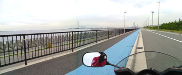 湾岸線は北西の強風!!やはりこのぐらいの重量と排気量のバイクは安定しています。SV650だと今日ぐらいの風だともう少し風にあおられ、ふらふらすると思う。トラックも乗用車もいつもよりかなり慎重運転。