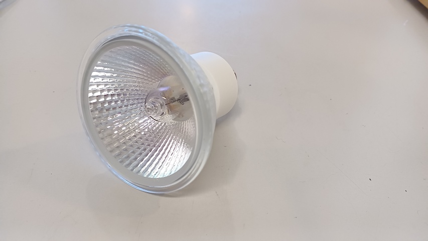 2スタジオのスポットライト1個ご臨終 ハロゲンからLEDに交換 器具はそのまま電球のみ これで2スタジオはスポットライトは全てLEDに