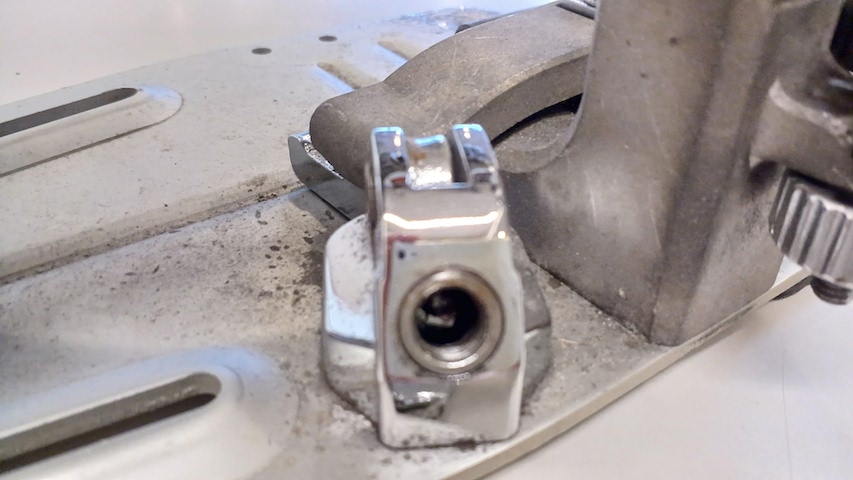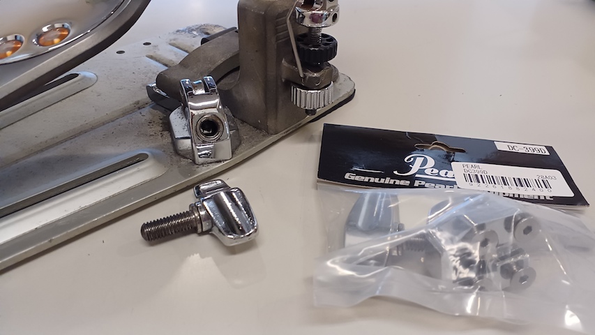 キックペダルをドラムのフープに 固定するためのネジが不具合 オス側ではなくメス側 修正しようがないので パーツを即発注 本日入荷しました 即交換修復