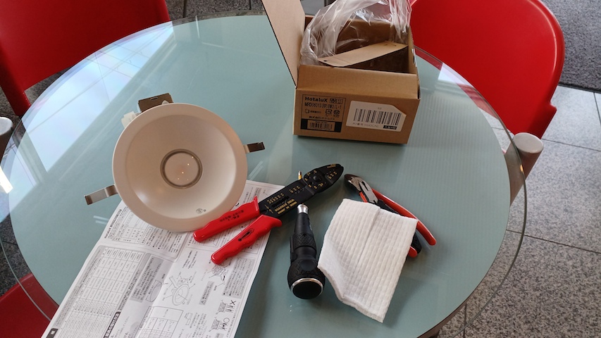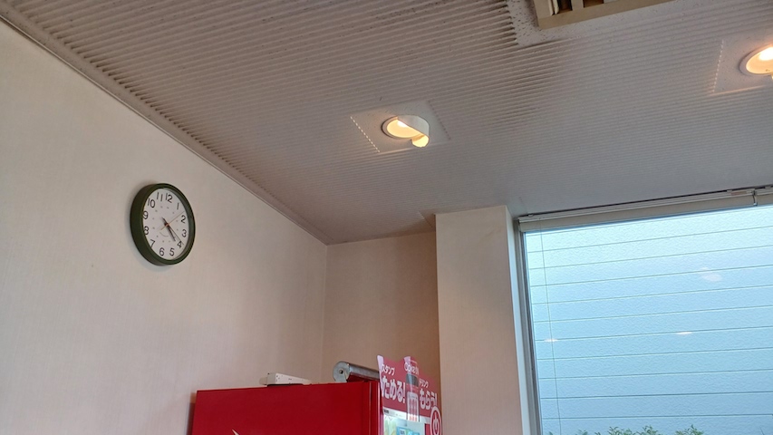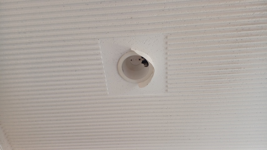 エントランスの自販機上ダウンライトがご臨終 電球を交換しても点かないので器具側の安定器が壊れたようです 二三日前に気が付きましたが、本日器具ごと交換 もちろんLED仕様 今回は二度目、順々に故障して行く (T_T) 在庫が後1個なので発注しておきます
